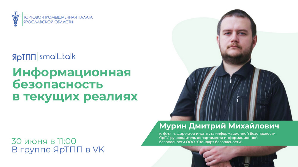 30.06.2022 г. в 11.00 при участии ЯрТПП пройдёт вебинар на тему «Информационная безопасность в текущих реалиях»